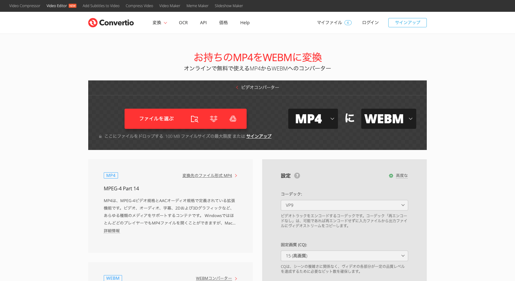 ここ数年で、ウェブサイトに動画を設置する機会が増えてきました。MP4だけでもいいのですが、ファイルサイズを小さくできるので、WebMも併用しています。