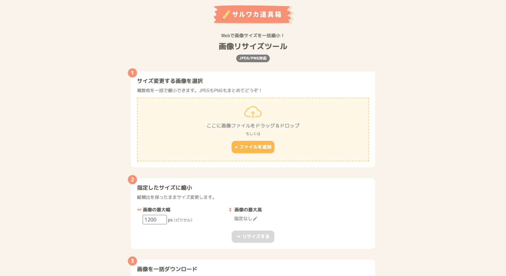 複数画像をドラッグ&ドロップして、画像サイズの最大幅を指定するだけ。複数の画像を一括でサイズ変更してくれるのはかなり嬉しい。