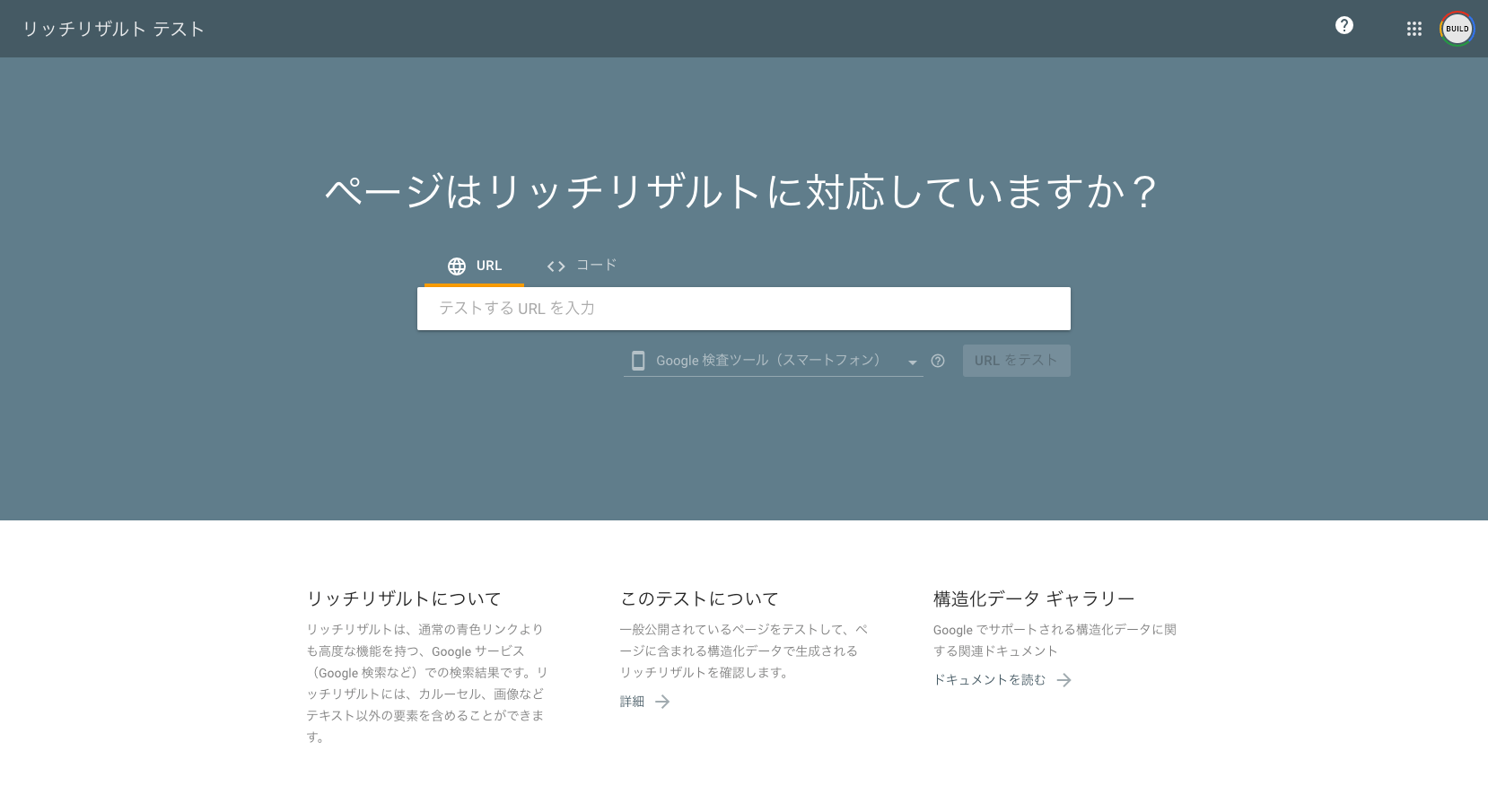構造化データの出力確認で使用するリッチリザルト テスト。