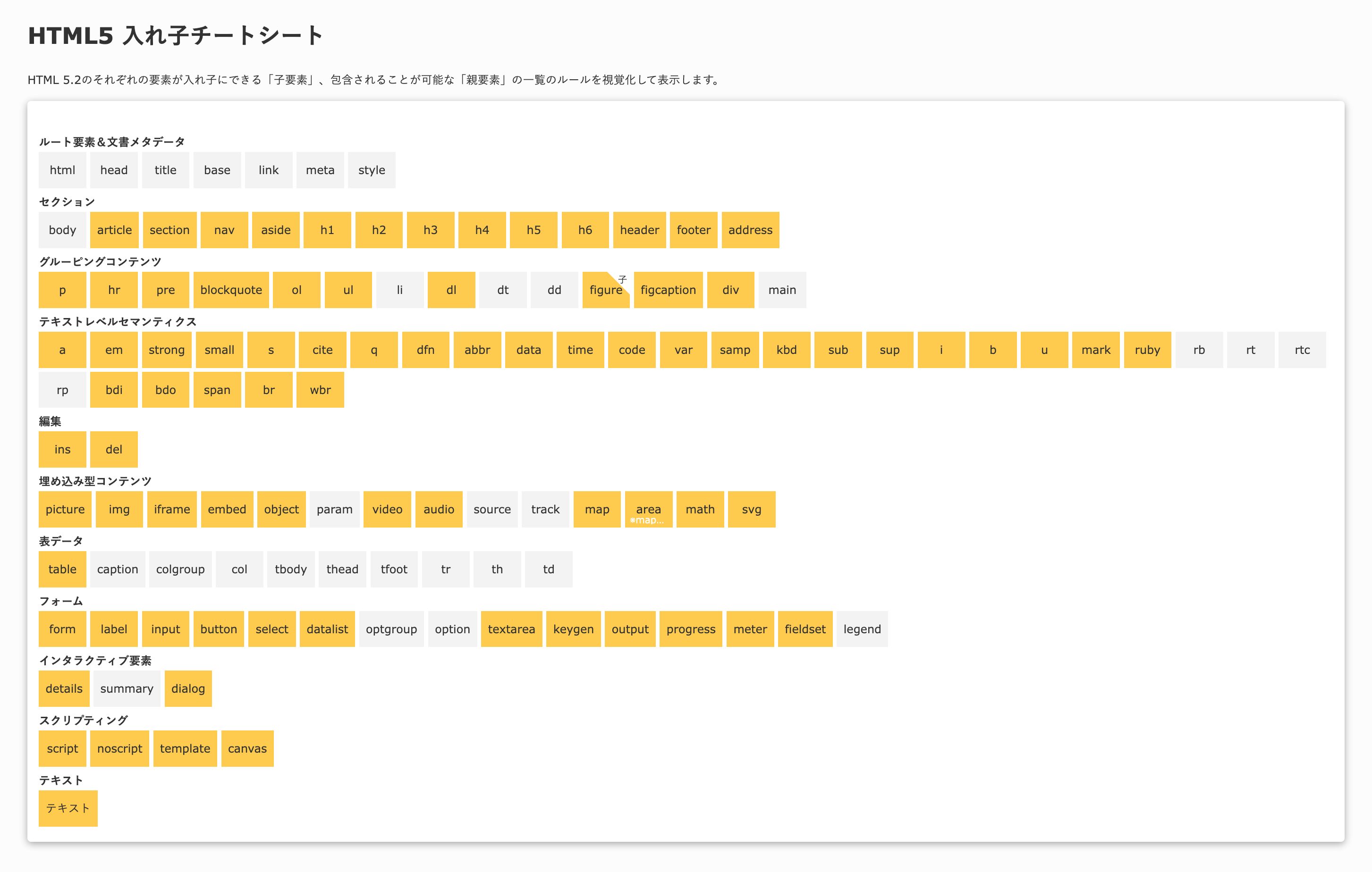 HTMLマークアップしているときに「ulってfigureの子要素にできるんだっけ?」といった確認ができるWebツール。
