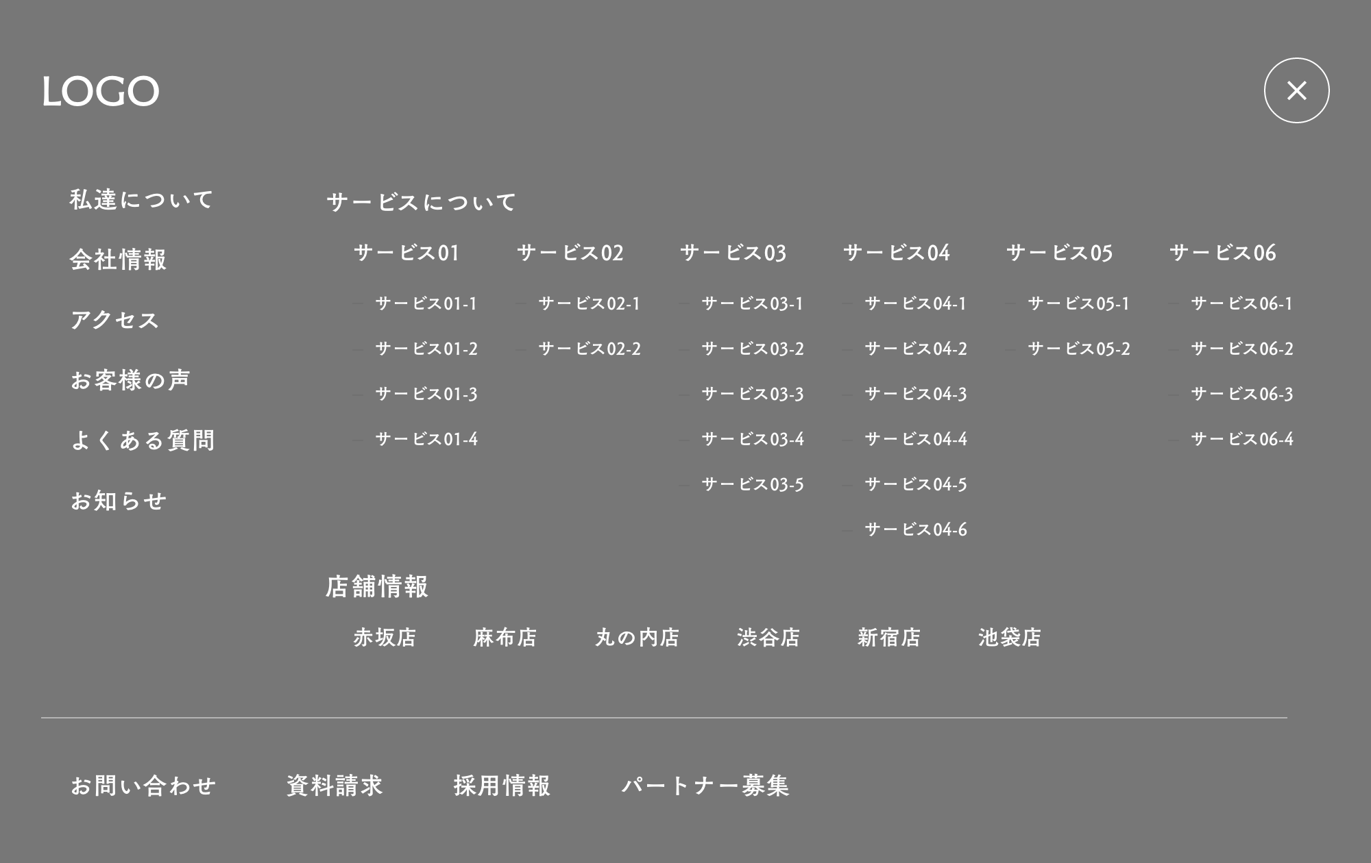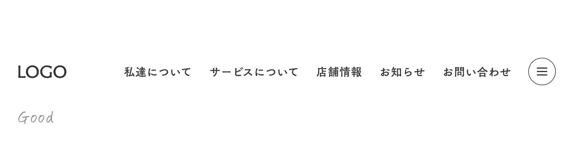 グローバルナビゲーションは、確実に見てほしいページに限定し、ハンバーガーメニューを利用して、見やすくしてあげましょう。