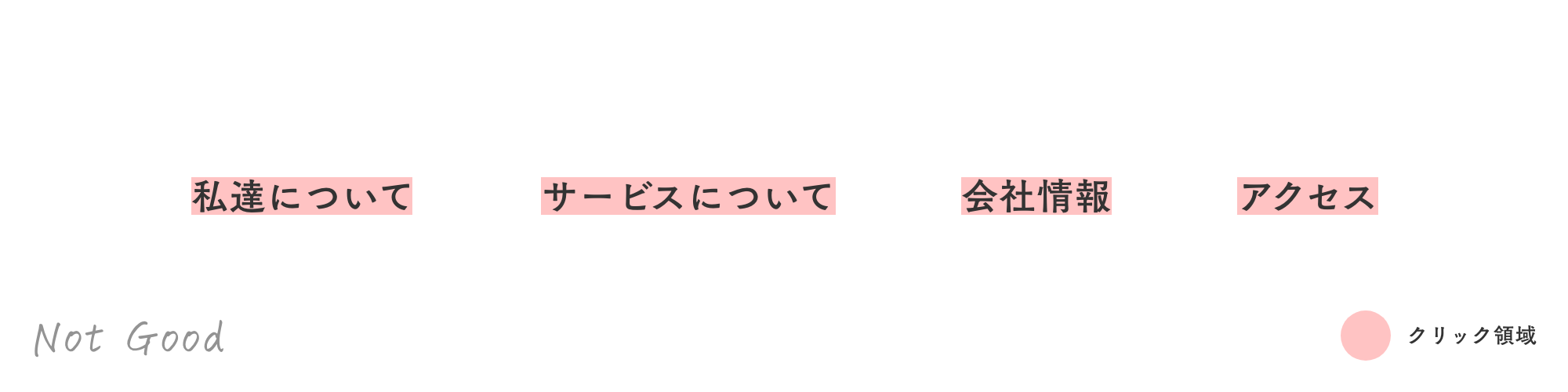 「サービスについて」「お問い合わせはこちら」など、リンクのラベリングは明確に、単体だけで分かるものを記述し、移動先がイメージできるようにしてあげると使いやすくなります。