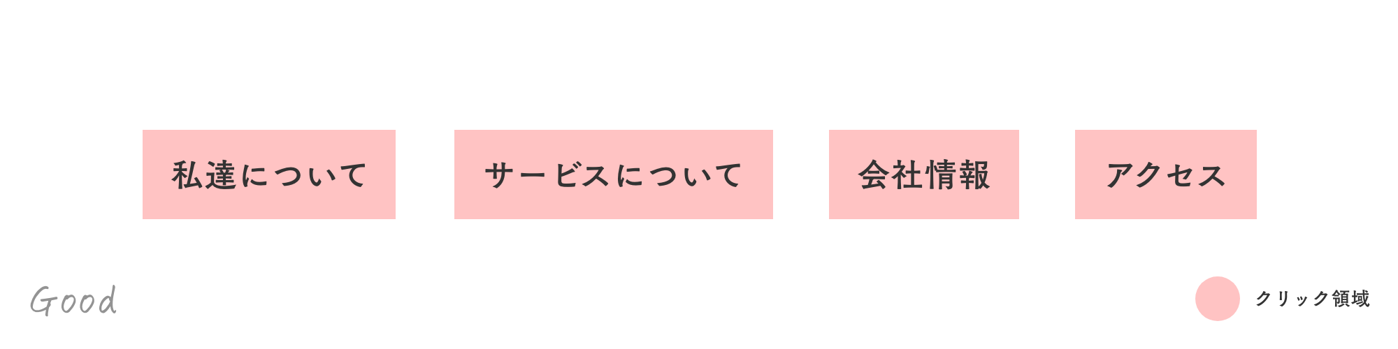 ナビゲーションリンクやボタンなど、ユーザーが操作する要素は、十分なクリック(スマホはタップ)領域を確保します。