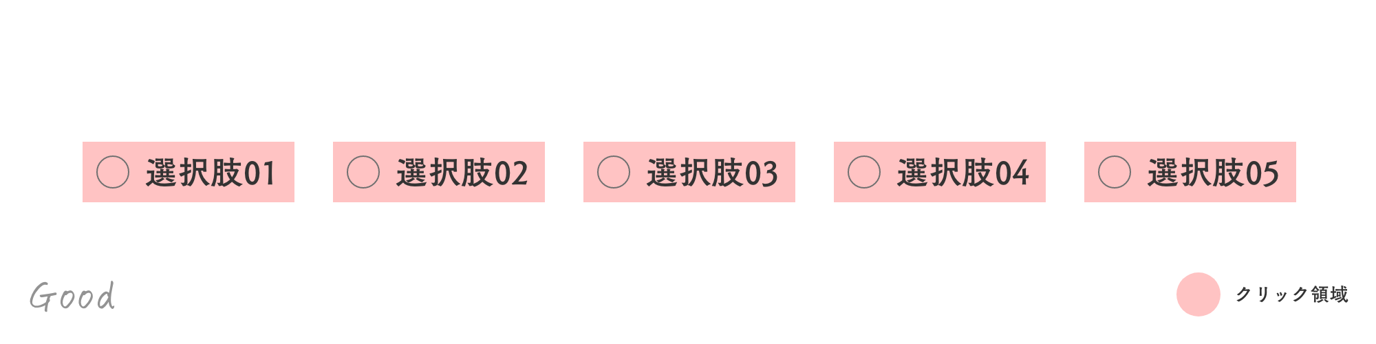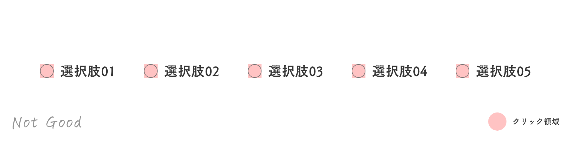 <label for="sample01">選択肢01</label>