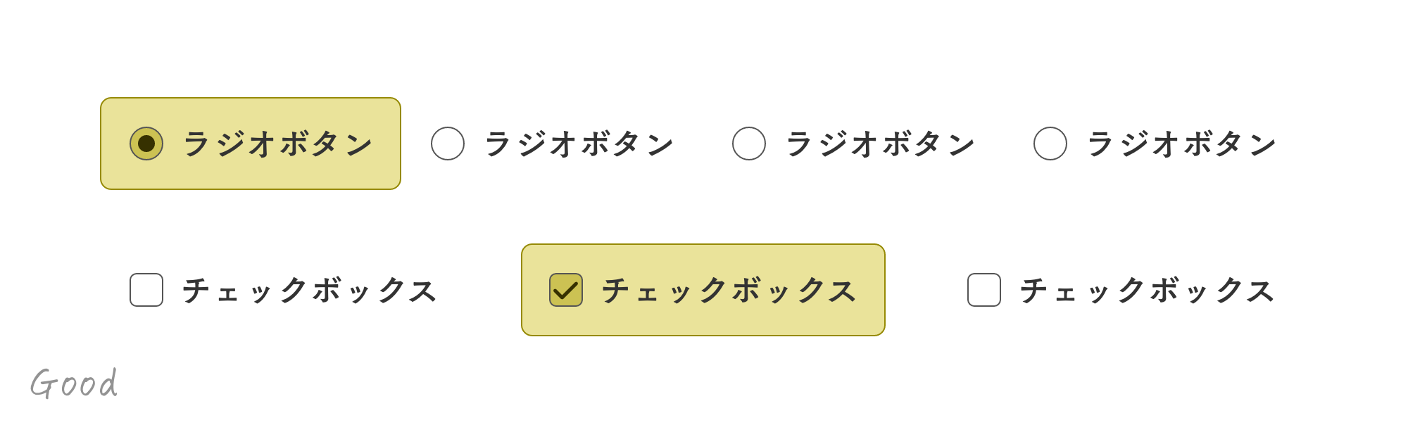 ラジオボタンやチェックボックスのデザインに注意