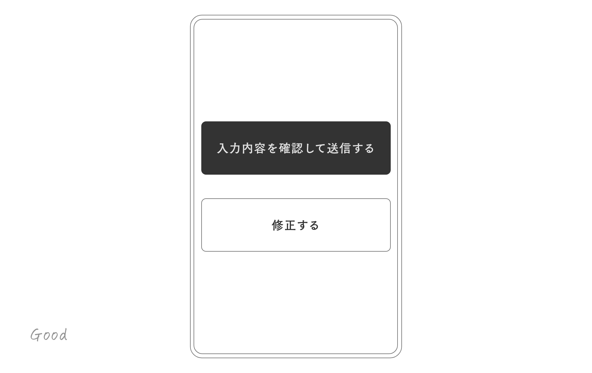 また、ボタンのラベルが「送信」「修正」であれば横並びにできますが、「入力内容を確認して送信する」など文字数が多い場合は、スマホ表示では縦並びにすることがあります。