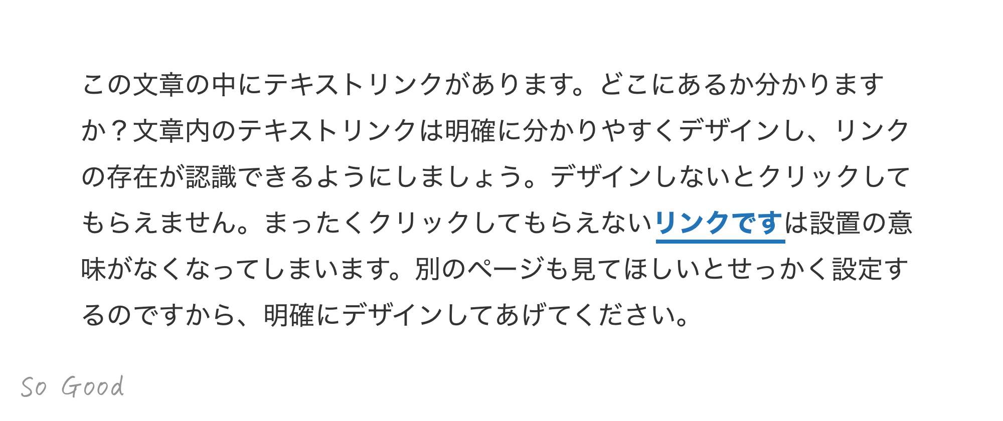 文章とリンクのデザインを明確に変えて、リンクの存在を認識できるようにしましょう。これが出来ていないサイトは意外とあります。